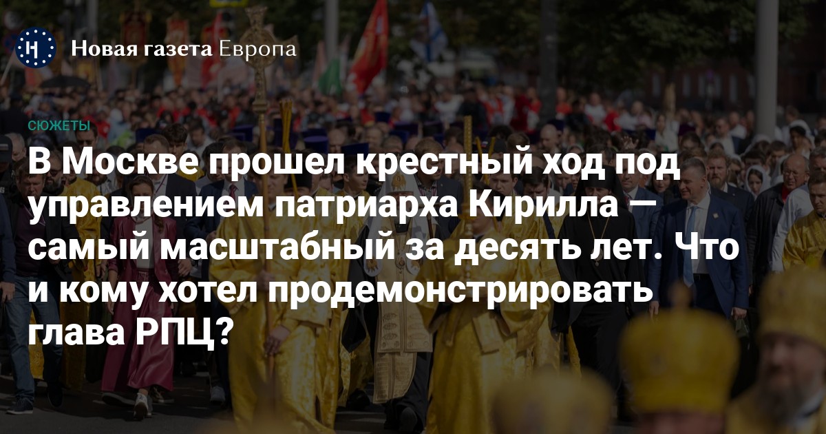 Вот на таком духовно-психологическом фоне «с небывалым подъемом» прошел крестный ход в Москве. «Патриарх показал отменную физическую форму», — спешат нас успокоить православно-патриотические источники.