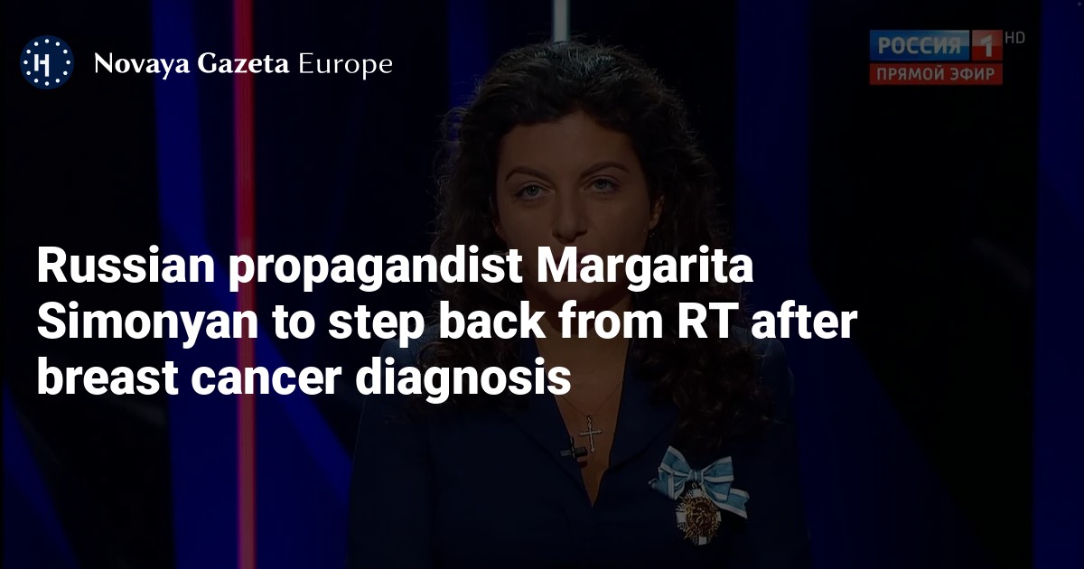 During an appearance on fellow propagandist Vladimir Solovyov’s prime time talk show on Russian state television on Sunday evening, Simonyan said that she had surgery scheduled and gestured towards her left breast, adding that she had “come on air today to tell the truth, because it is always better to tell the truth yourself than to let the audience feed on rumors”.