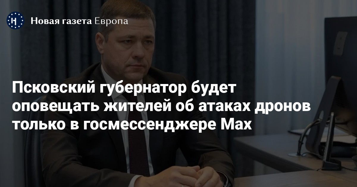 Губернатор Псковской области Михаил Ведерников сообщил, что будет информировать жителей об атаках украинских беспилотников только в госмессенджере Max. Об этом он написал в своем телеграм-канале.