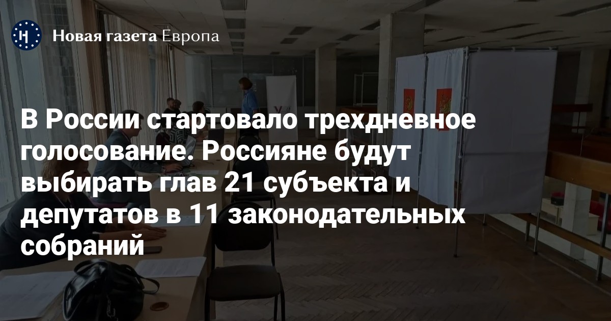 В России начались трехдневное голосование. С 12 по 14 сентября граждане смогут поучаствовать в выборах глав 20 регионов РФ и аннексированного Севастополя, а также депутатов в 11 законодательных собраний. Кроме этого, в 25 субъектах проголосуют за глав муниципалитетов и законодателей в городских и сельских советах.