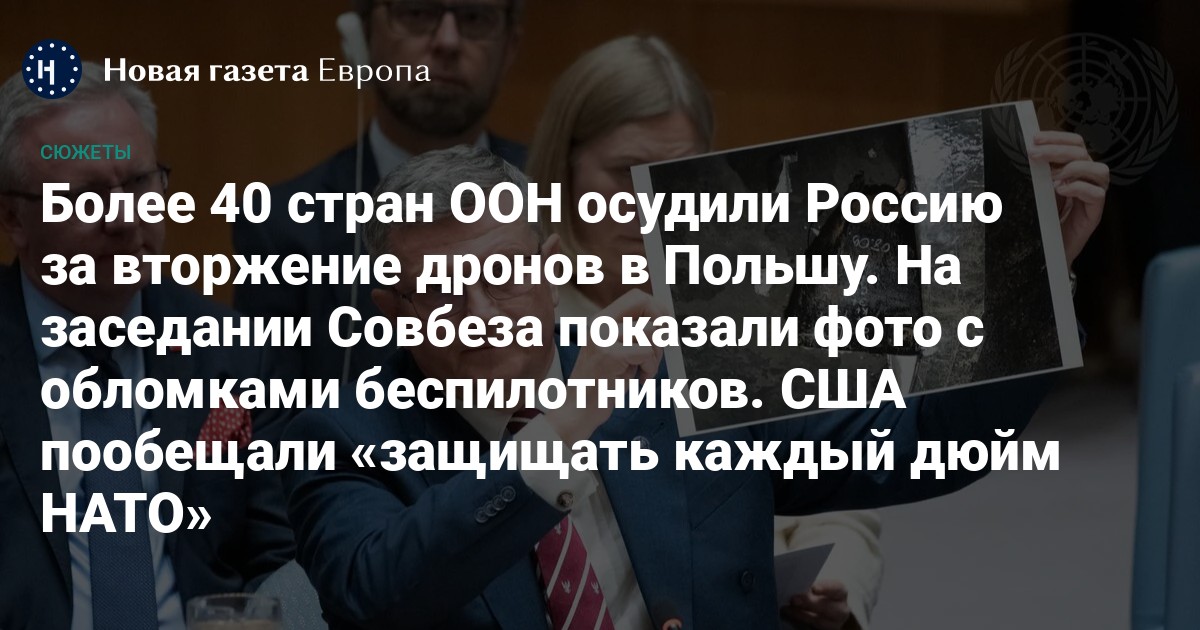 Вечером 12 сентября Совбез ООН собрался на внеочередное заседание из-за «угрозы миру и безопасности» на фоне вторжения российских дронов в Польшу. По итогу 43 страны, включая США, выступили с совместным заявлением, осуждающим действия России.