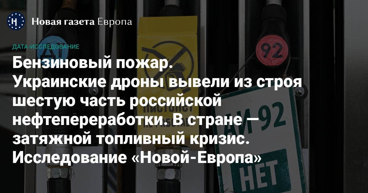 Российский бензиновый рынок охвачен невиданным за много лет дефицитом топлива. Дроны ВСУ вывели из строя шестую часть нефтепереработки. «Новая-Европа» рассказывает, кто пострадал больше всех и почему на этот раз топливный кризис пришел в Россию до конца года.
