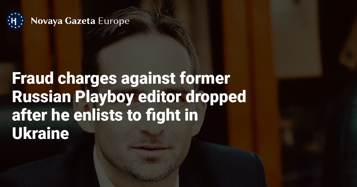 A fraud case against the former editor-in-chief of Russian Playboy has been dropped following his enlistment to fight for the Russian military in Ukraine, independent media outlet Mediazona reported on Tuesday.