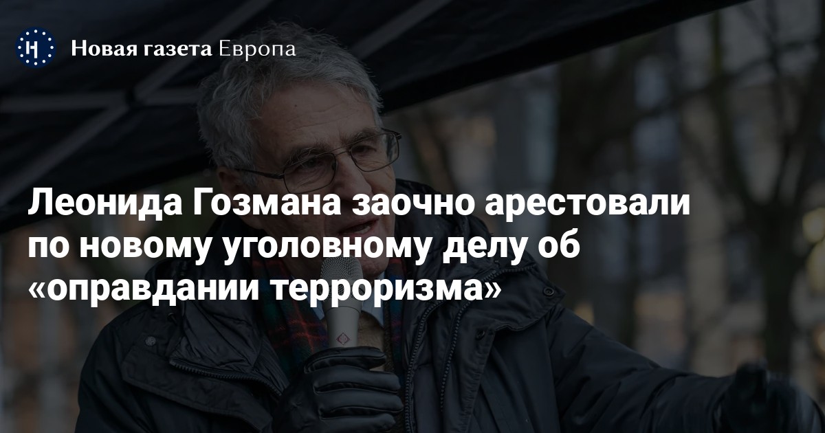 Гагаринский районный суд Москвы арестовал политика Леонида Гозмана на два месяца по новому уголовному делу по статье об «оправдании терроризма» (ст. 205.2 УК). Об этом стало известно «Новой газете Европа».