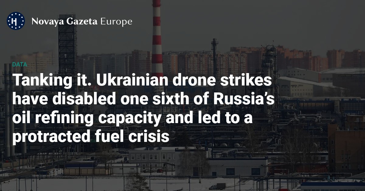 Novaya Europe calculated that five plants have faced total shutdown, three of which belong to Rosneft, one to Lukoil, another Russian energy giant, while the fifth, the Afipsky refinery, is not owned by any of Russia’s major oil companies. Factoring in the two strikes on the Ryazan oil refinery, which is currently operating at half of its previous level, Ukrainian drones have knocked out approximately 17% of Russian oil refining capacity since the beginning of August, according to calculations by Reuters and Novaya Europe.