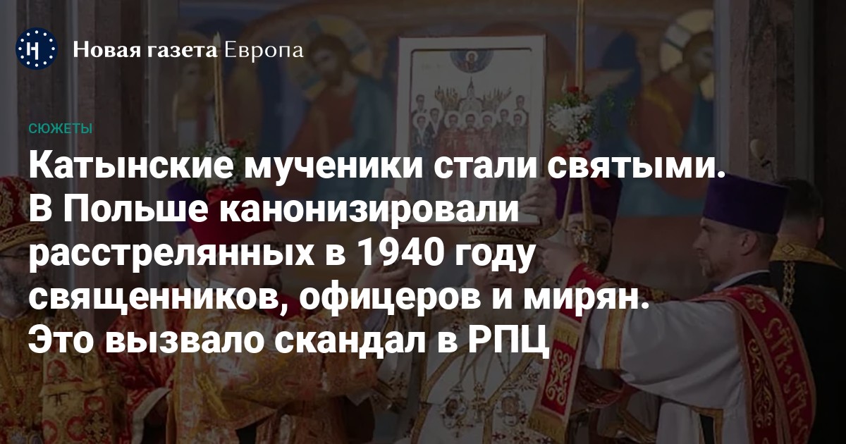 Одна из церквей мирового православия — Польская — совершила очень проблемную для РПЦ канонизацию. В день 86-й годовщины вторжения СССР как союзника Третьего рейха в Польшу в Варшаве причислили к лику святых катынских мучеников — православных священников-капелланов Войска польского и других верующих, расстрелянных органами НКВД вместе с польскими военнопленными.