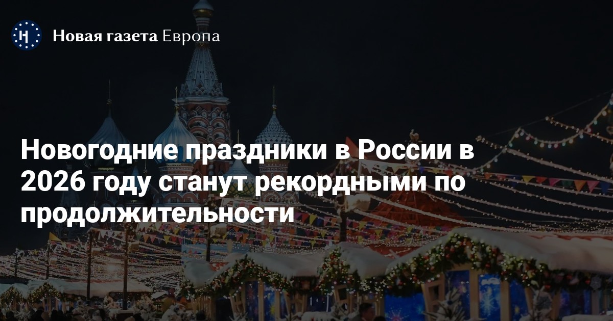 Согласно календарю, новогодние каникулы 2026 года продлятся 12 дней (с 31 декабря по 11 января включительно) и станут рекордно длинными в истории страны.