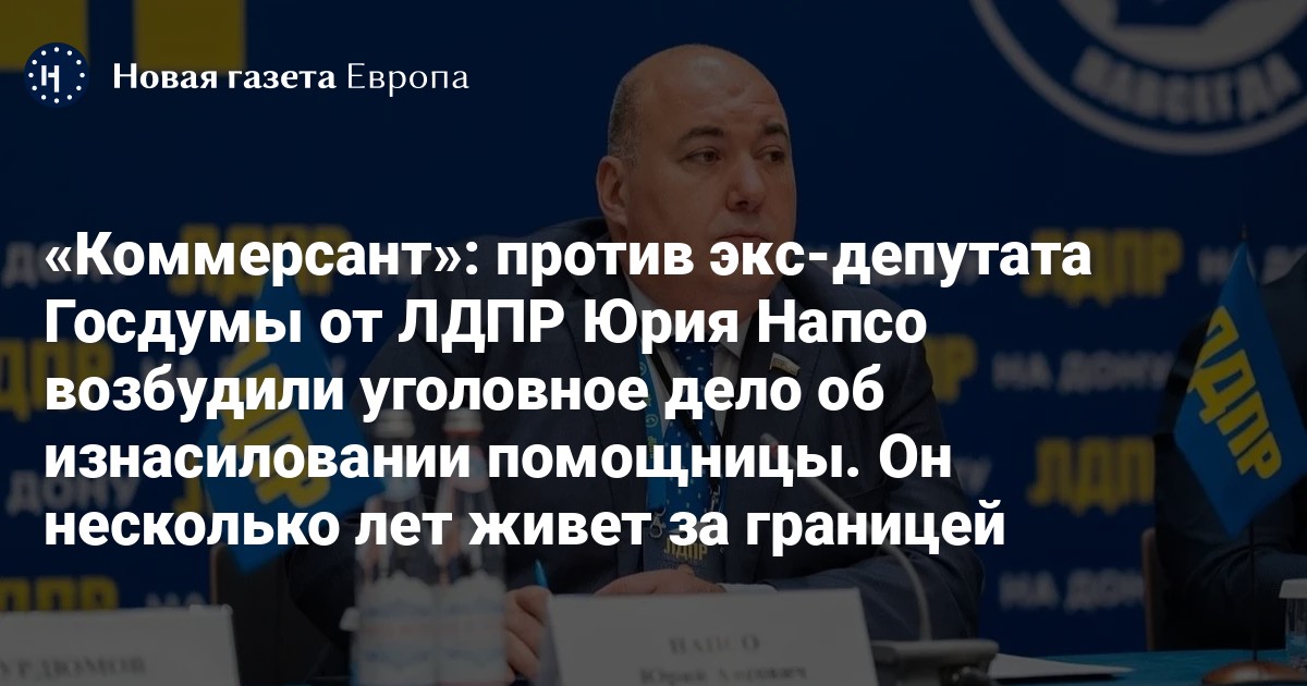 Против бывшего депутата Госдумы от ЛДПР Юрия Напсо возбудили уголовное дело об изнасиловании помощницы (ч. 1 ст. 131 УК РФ). Об этом сообщает «Коммерсант».
