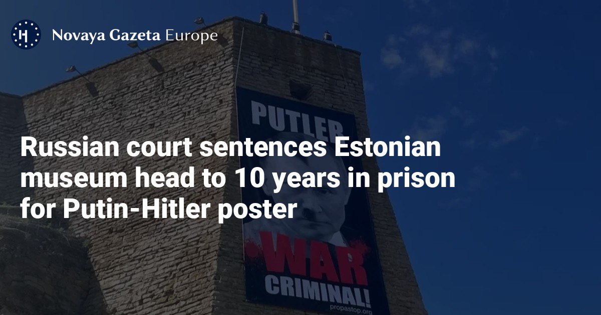 A Moscow court has sentenced the head of Estonia’s Narva Museum to 10 years in prison in absentia for spreading “false information” about the Russian military and “rehabilitating Nazism” for a giant poster it produced comparing Vladimir Putin to Adolf Hitler, Mediazona reported on Thursday.