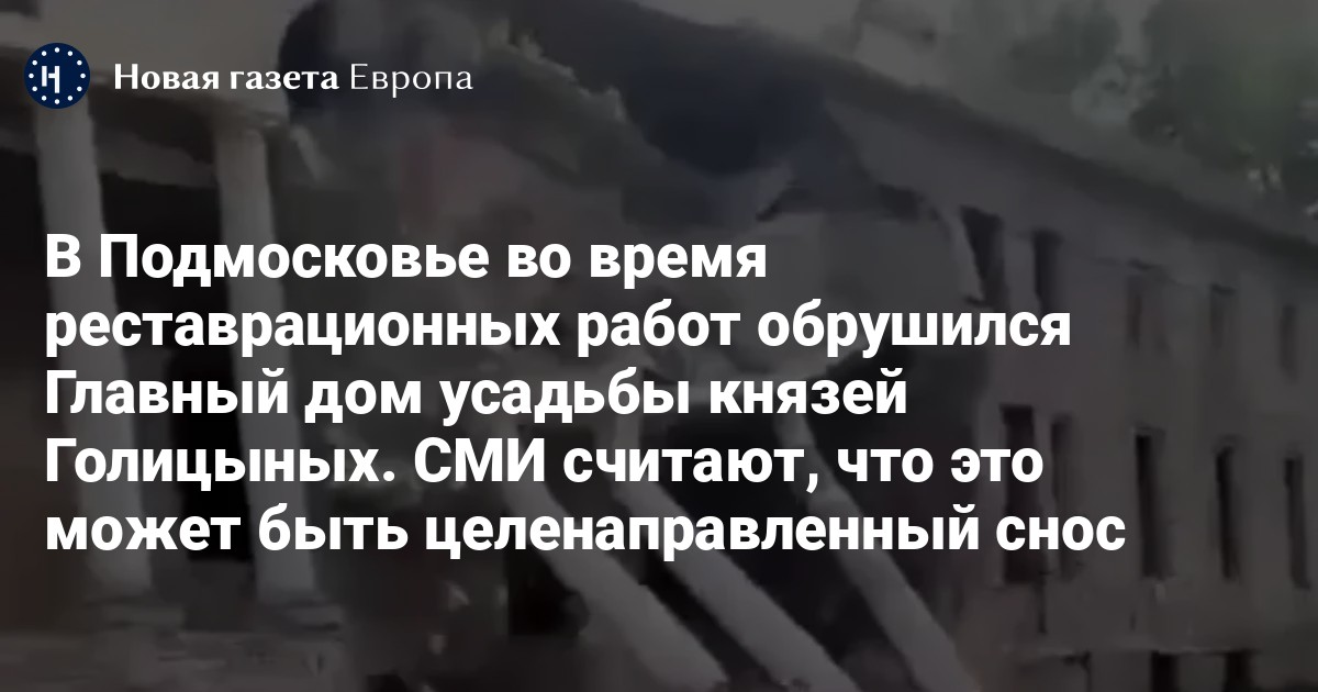 В Подмосковье во время реставрационных работ обрушился Главный дом усадьбы князей Голицыных. СМИ считают, что это может быть целенаправленный снос