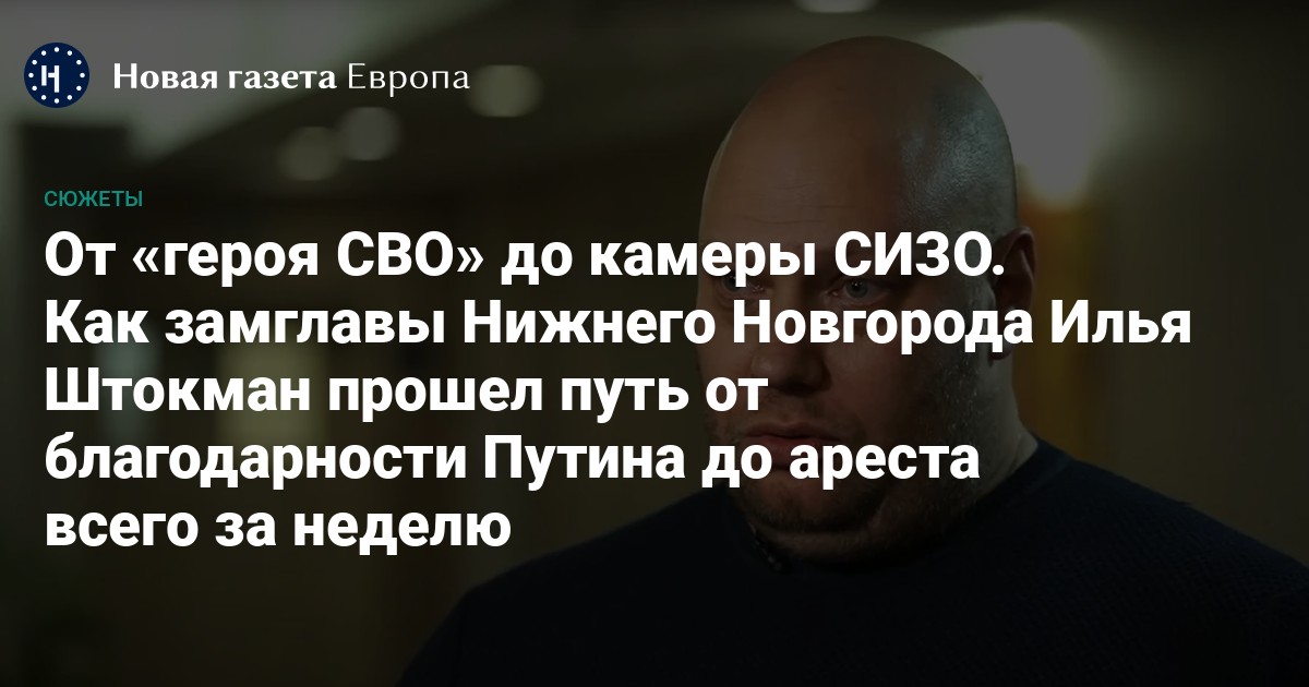 Бывшего первого замглавы администрации Нижнего Новгорода Илью Штокмана, который считался «хорошим товарищем» мэра города, задержали по подозрению в получении многомиллионной взятки. Чиновник, прошедший путь от победителя конкурса «Лидеры России» до участника «СВО», всего за неделю до задержания получил личную благодарность от Владимира Путина.