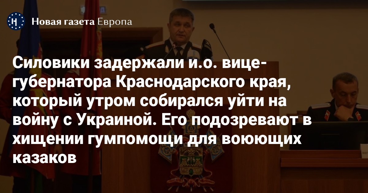 Сегодня утром Власов на краевом Совете атаманов заявил о решении отправиться на войну с Украиной. Он был освобожден от должности и. о. вице-губернатора Краснодарского края.