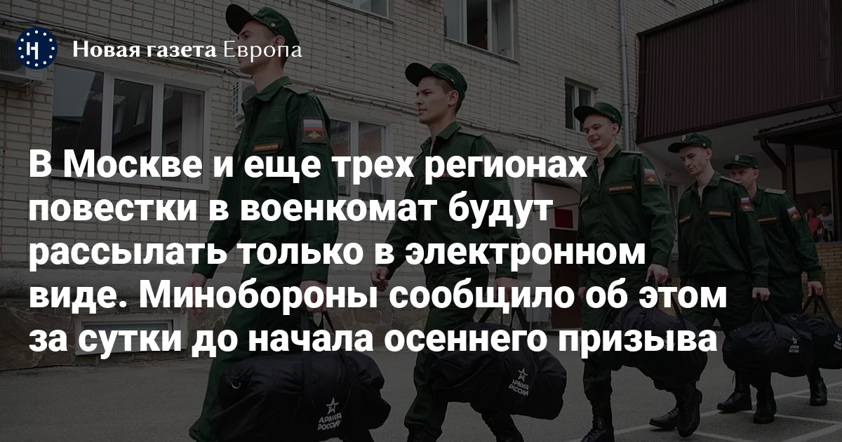 «Важные истории» отмечают, что и само интервью с Бурдинским, и сообщение от Минобороны о том, что в Москве и трех регионах будут использоваться только электронные повестки, было опубликовано ровно за сутки до начала осеннего призыва.