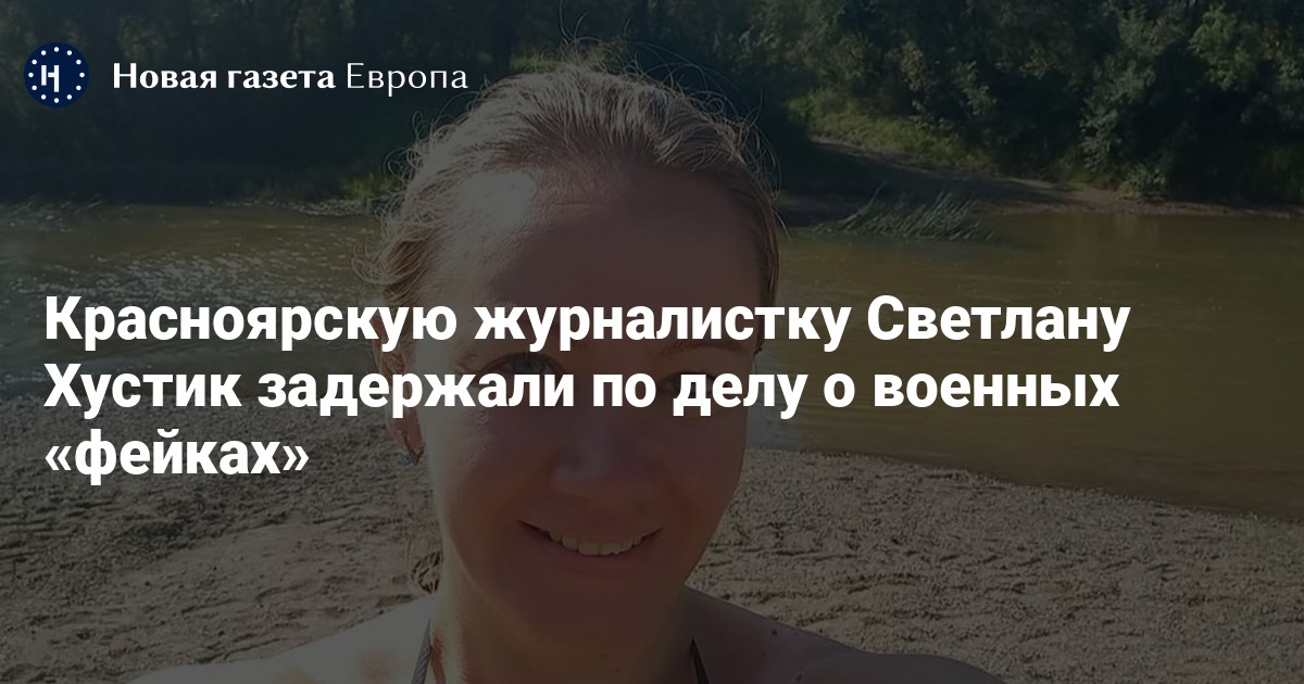 В Красноярске по подозрению в распространении «фейков» о российской армии (часть 1 статьи 207.3 УК) задержали журналистку Светлану Хустик, сообщили ТАСС, NGS24 и «Проспект мира».