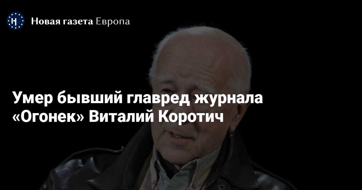 Бывший главный редактор журнала «Огонек», писатель и поэт Виталий Коротич скончался в Москве на 90-м году жизни. Об этом сообщили историк Виктор Мироненко и журналист Дмитрий Гордон.