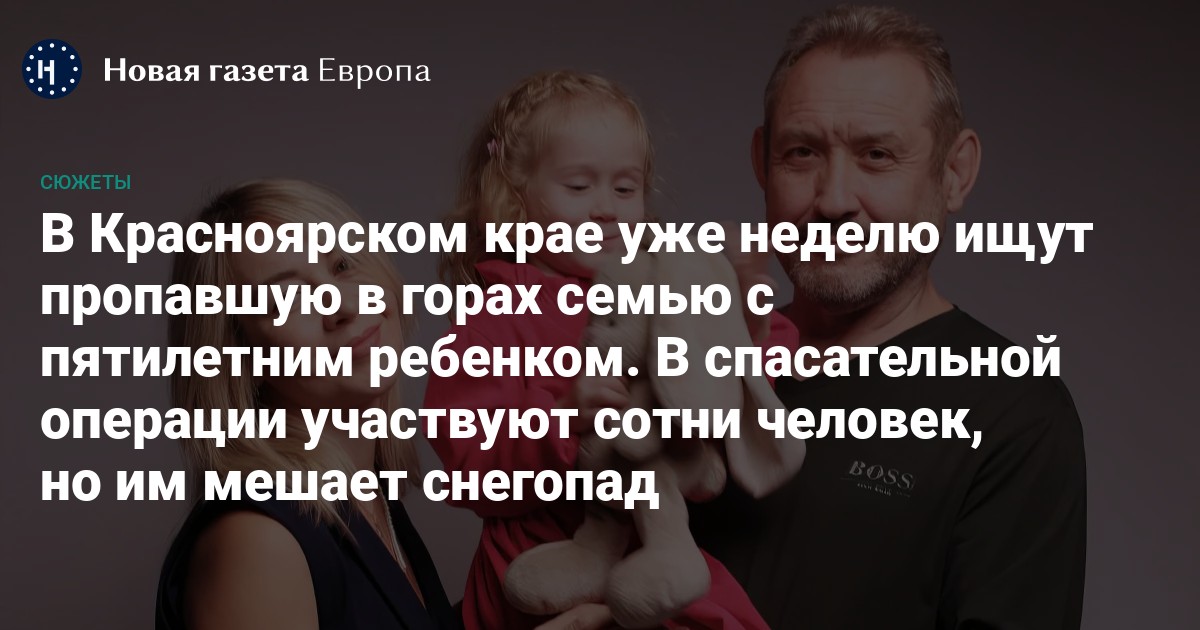 28 сентября в горах Красноярского края пропала семья Усольцевых — супруги и их пятилетняя дочь. Они отправились в поход и больше не выходили на связь. Уже неделю их ищут спасатели, волонтеры и следователи. Сотни людей прочесывают километры тайги, но поискам мешают снегопад и холод, который с каждым днем становится сильнее.