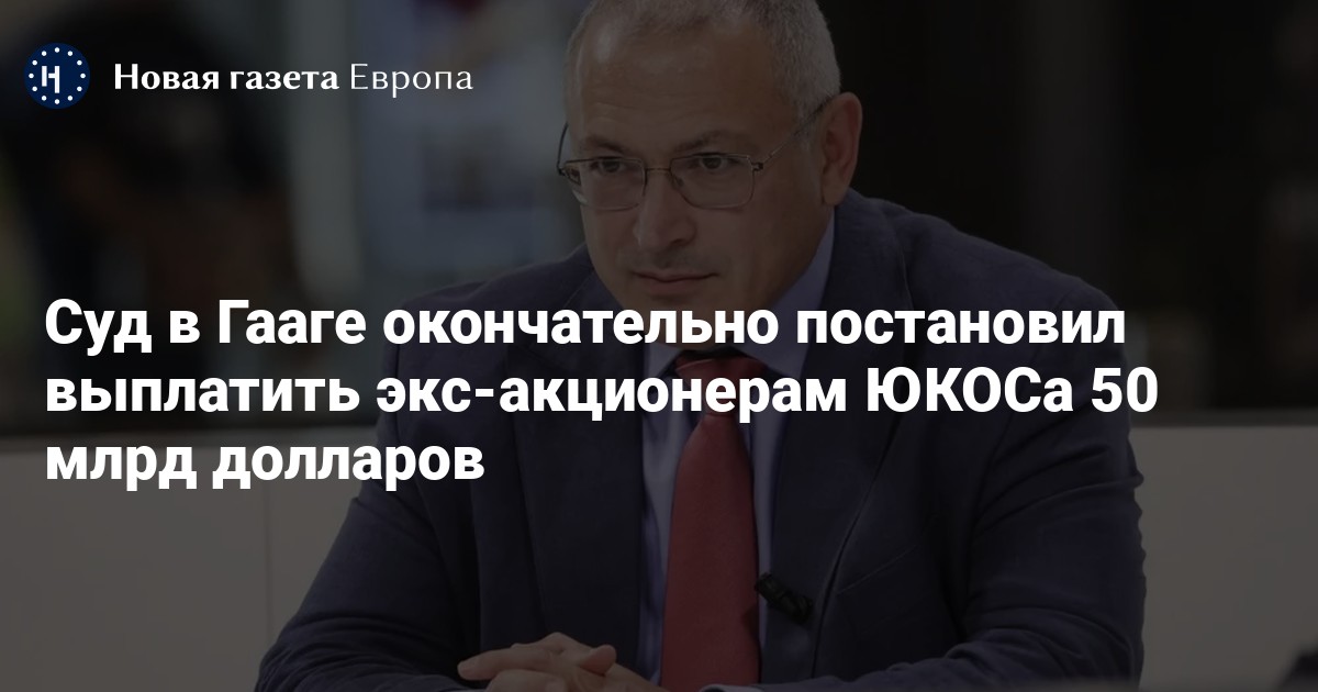 Верховный суд Нидерландов в Гааге принял окончательное решение о выплате 50 млрд долларов экс-акционерам ЮКОСа, отклонив кассационную жалобу России. Об этом сообщила пресс-служба суда.