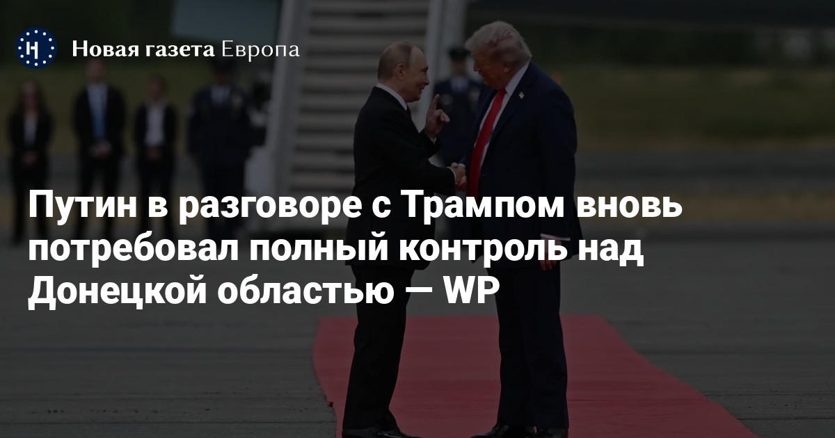Владимир Путин во время недавнего телефонного разговора с Дональдом Трампом потребовал, чтобы Украина уступила России полный контроль над Донецкой областью как условие прекращения войны. Об этом пишет The Washington Post со ссылкой на источники.