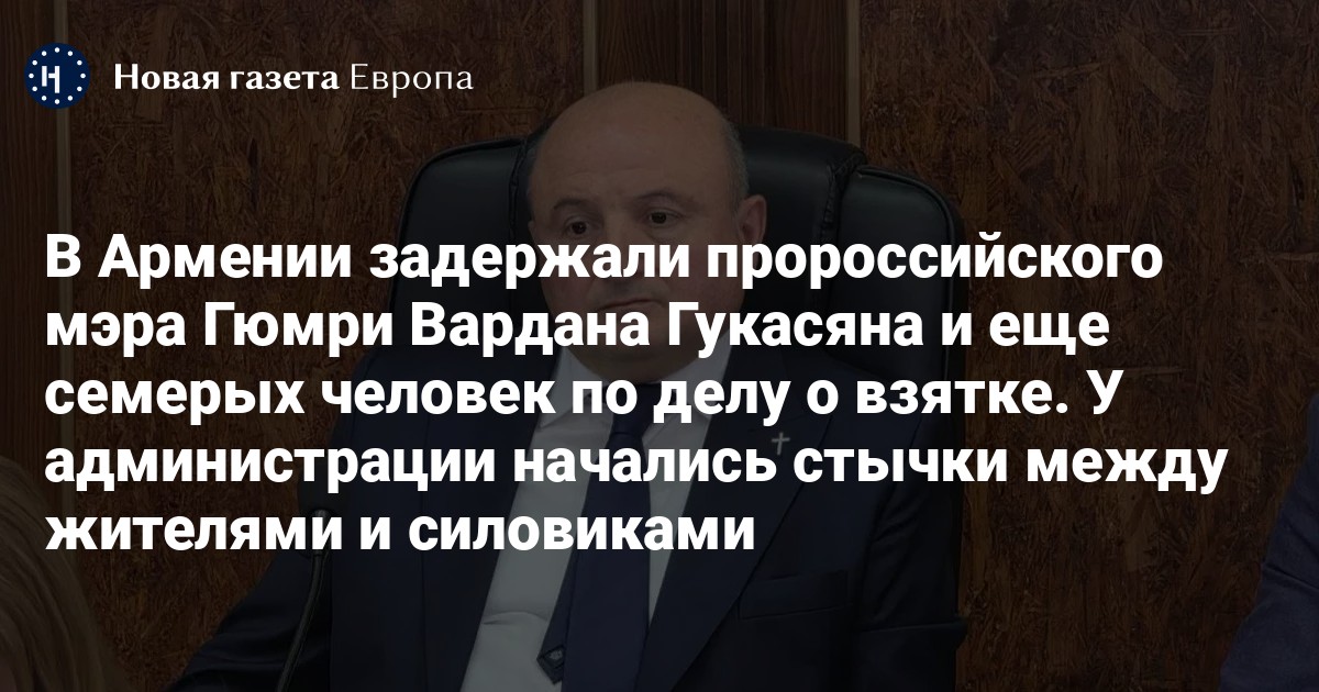 В Армении задержали пророссийского мэра Гюмри Вардана Гукасяна и еще семерых человек по делу о взятке