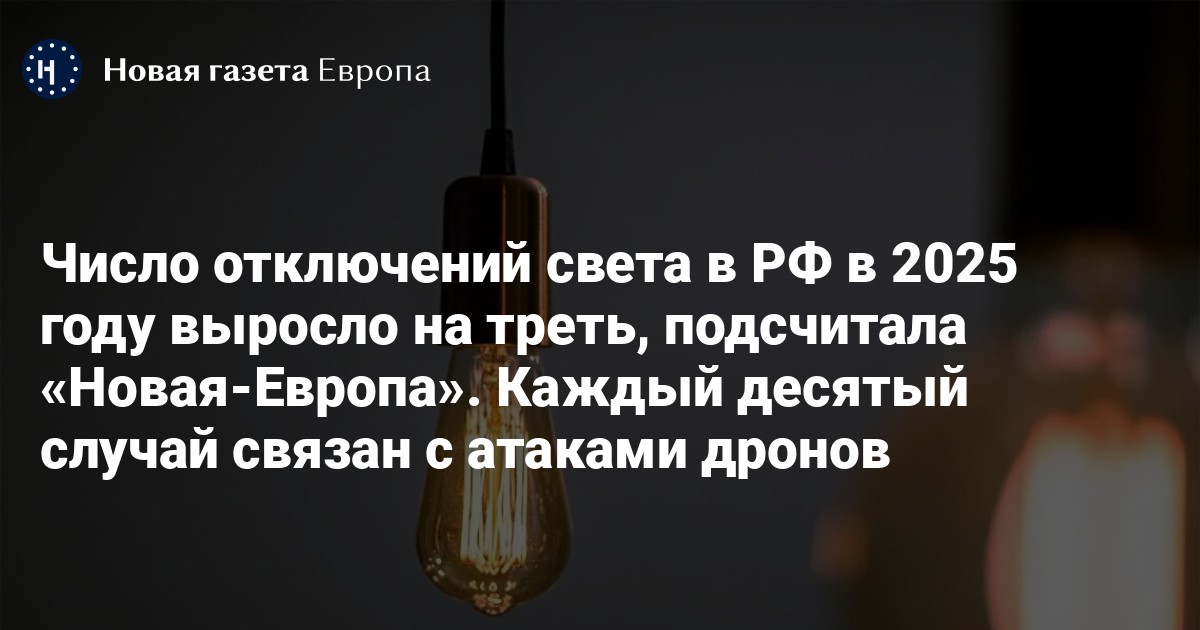 Число отключений света в РФ в 2025 году выросло на треть, подсчитала «Новая-Европа»