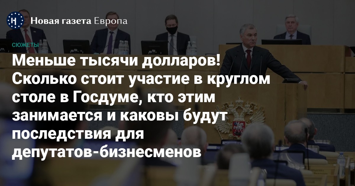 Сколько стоит участие в круглом столе в Госдуме, кто этим занимается и каковы будут последствия для депутатов-бизнесменов