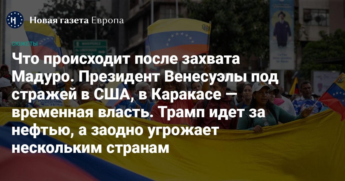 Президент Венесуэлы под стражей в США, в Каракасе — временная власть. Трамп идет за нефтью, а заодно угрожает нескольким странам