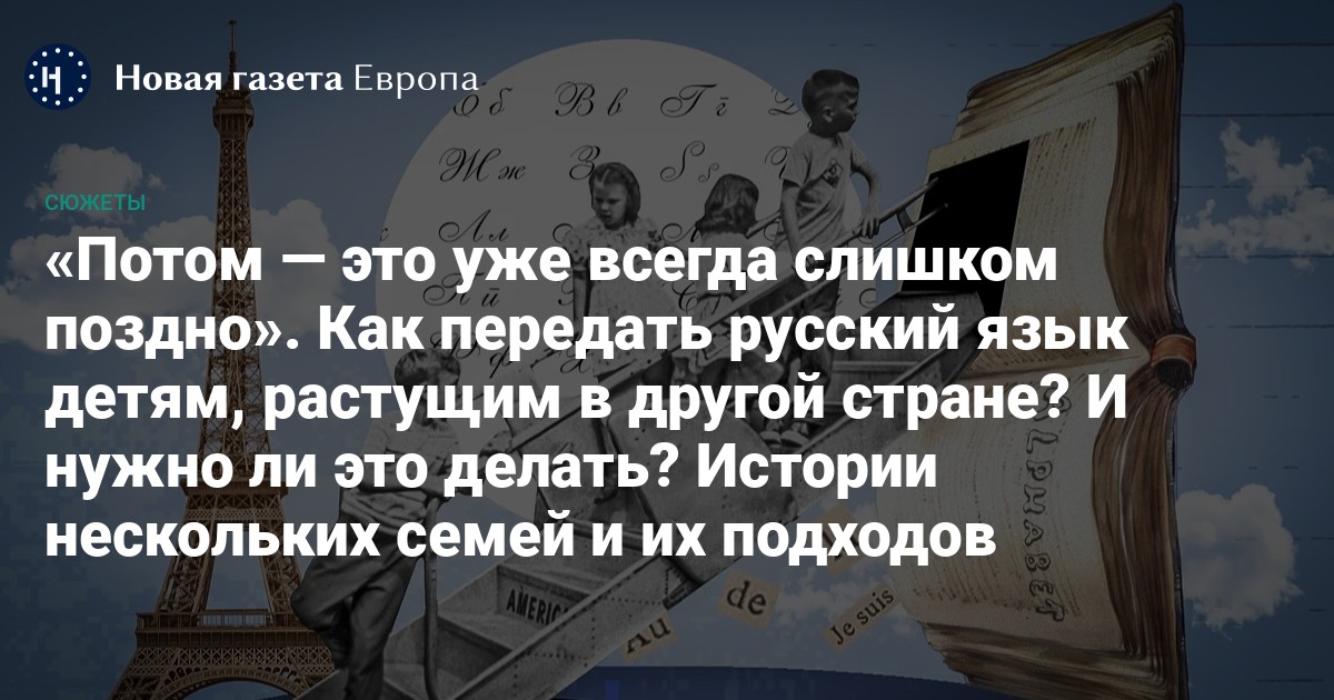 — Когда ребенок рождается в иноязычной среде или попадает в иноязычную среду, родители должны задать себе вопрос: «Действительно ли мне нужен этот русский язык? И если да, то зачем и чем мы готовы ради этого пожертвовать?»