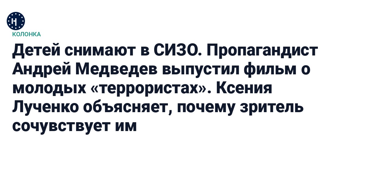 Пропагандист Андрей Медведев выпустил фильм о молодых «террористах». Ксения Лученко объясняет, почему зритель сочувствует им