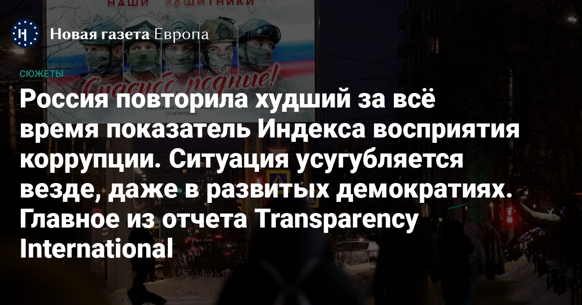 Россия в 2025-м набрала 22 балла из 100 в Индексе восприятия коррупции (ИВК) Transparency International, повторив свой антирекорд 2024 года. В этом перечне страна находится между Гондурасом и Зимбабве.