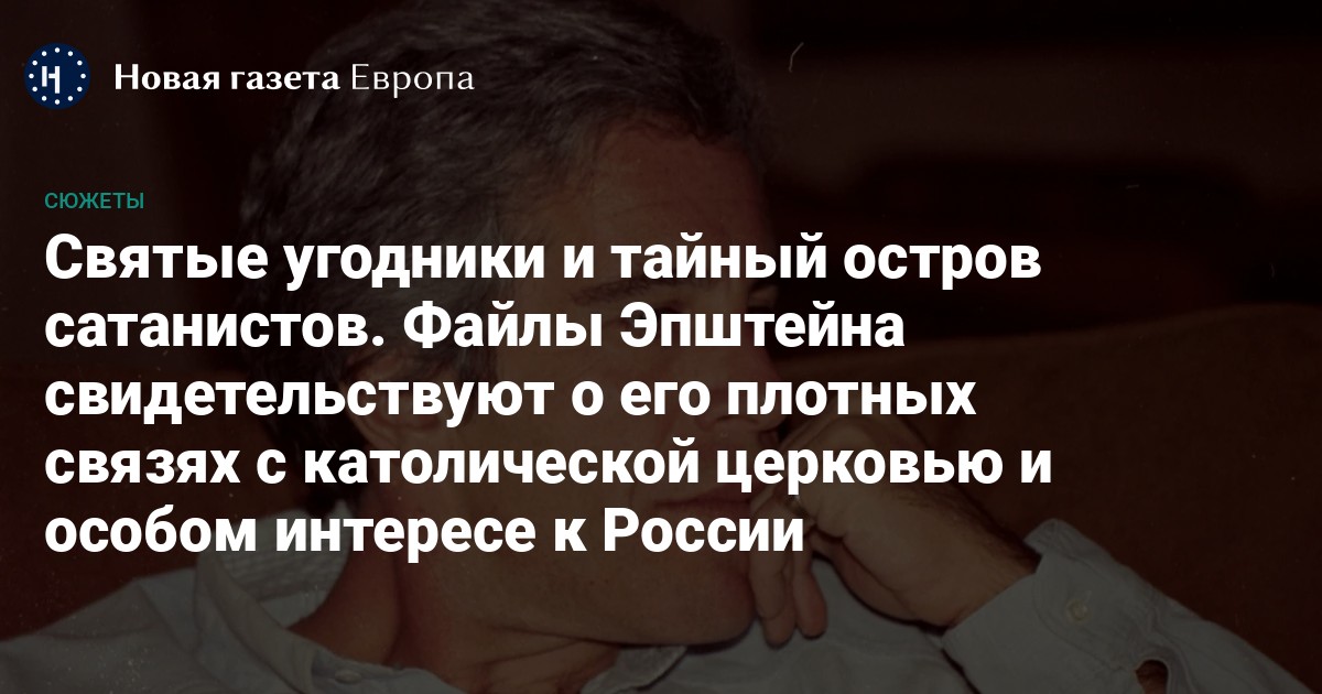 Эпштейн, имеющий еврейские бруклинские корни, не был религиозен в классическом смысле слова. Российская пропаганда — церковная и государственная — всячески старается подверстать его убеждения под «сатанизм», который в июле прошлого года был провозглашен Верховным судом РФ «экстремистской организацией». Многолетняя сожительница Эпштейна белоруска Карина Шуляк, которой он завещал более 100 млн долларов, якобы публиковала в соцсети Х сведения о человеческих жертвоприношениях, намекая, что за них должен ответить Трамп. Вскоре пост был удален. Еще до решения Верховного суда РФ Всемирный русский народный собор — церковно-общественный орган, возглавляемый патриархом РПЦ и объединяющий ведущих общественных деятелей России, — постановил, что Запад «впал в сатанизм», а Россия исполняет божественную «миссию удерживающего, защищающего мир» от этого самого Запада.