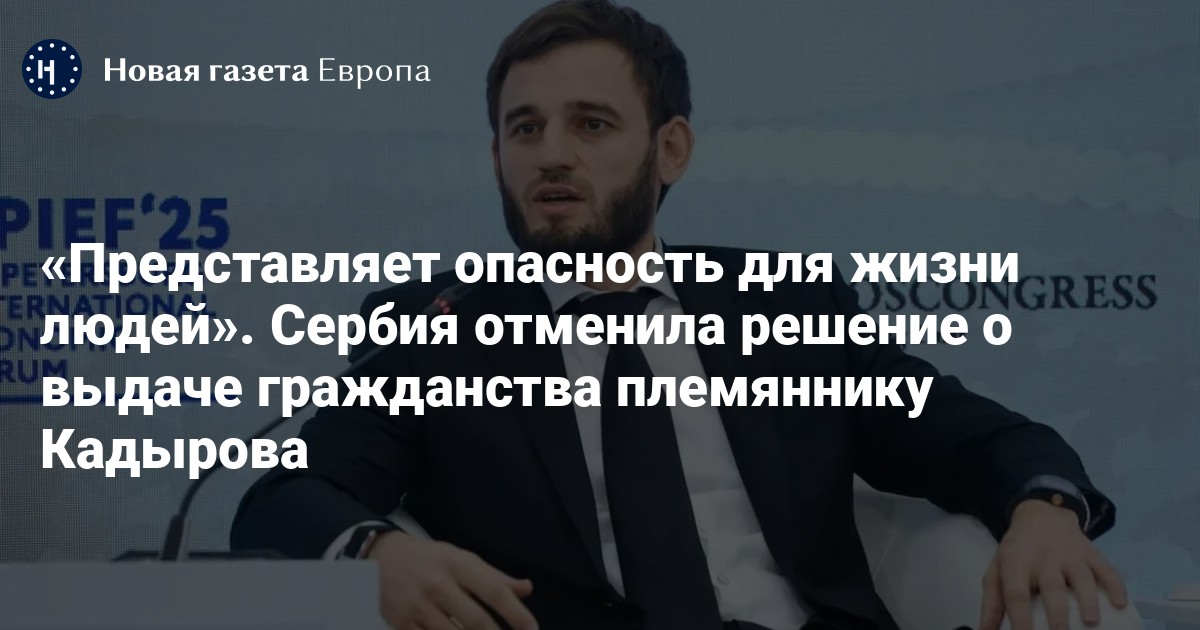 Правительство Сербии отменило решение о предоставлении гражданства Якубу Закриеву — племяннику главы Чечни Рамзана Кадырова. Об этом сообщает издание Nedeljnik со ссылкой на документ.